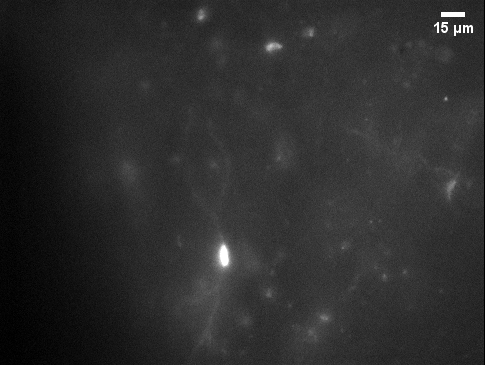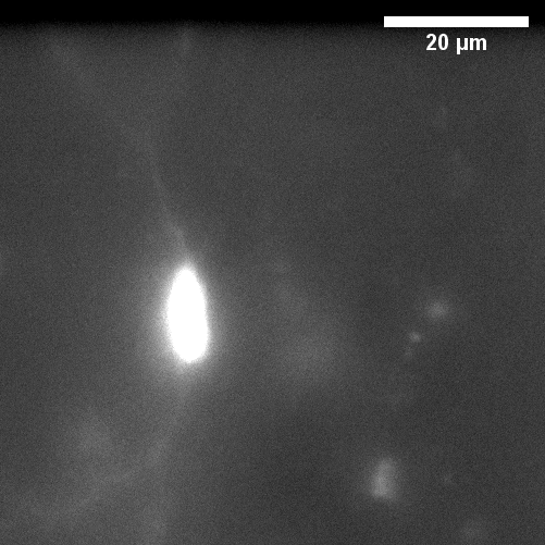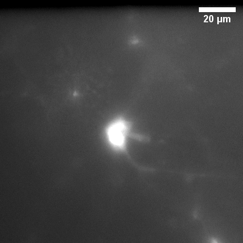 - The image field was visualized under a microscope and the field size was 280 ×260 μm size. The tissue was stimulated with light pulses (488 nm wavelength, 15–25 ms exposure time) using a LED lamp (Lambda HpX L5, Sutter Instruments) connected to the microscope via fiber optics. Image sequences were acquired at a frequency of 4 frames/s (250 ms/frame) by using a digital camera (Cool SNAP MYO, Photometrics)