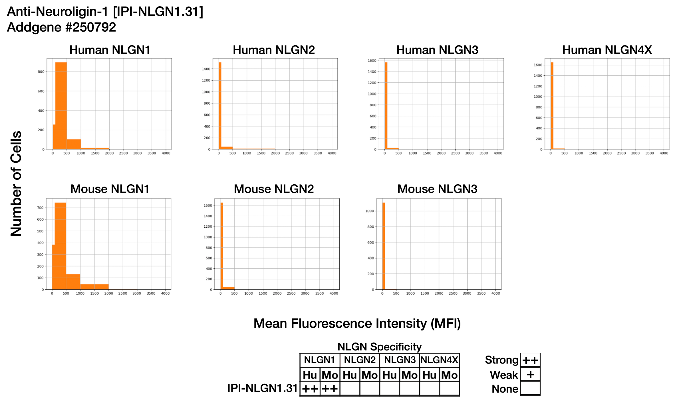 - This data shows binding to human and mouse NLGN1 only.