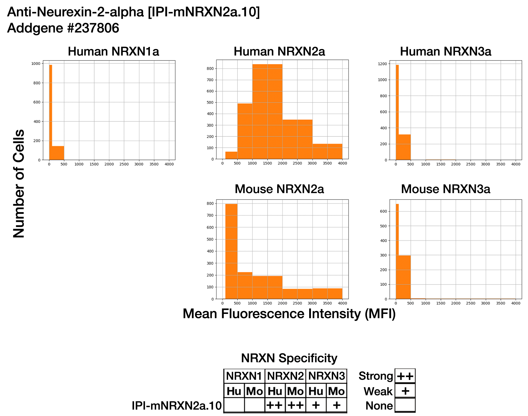 - This data shows strong binding to human and mouse NRXN2a, and weak binding to other NRXNs.