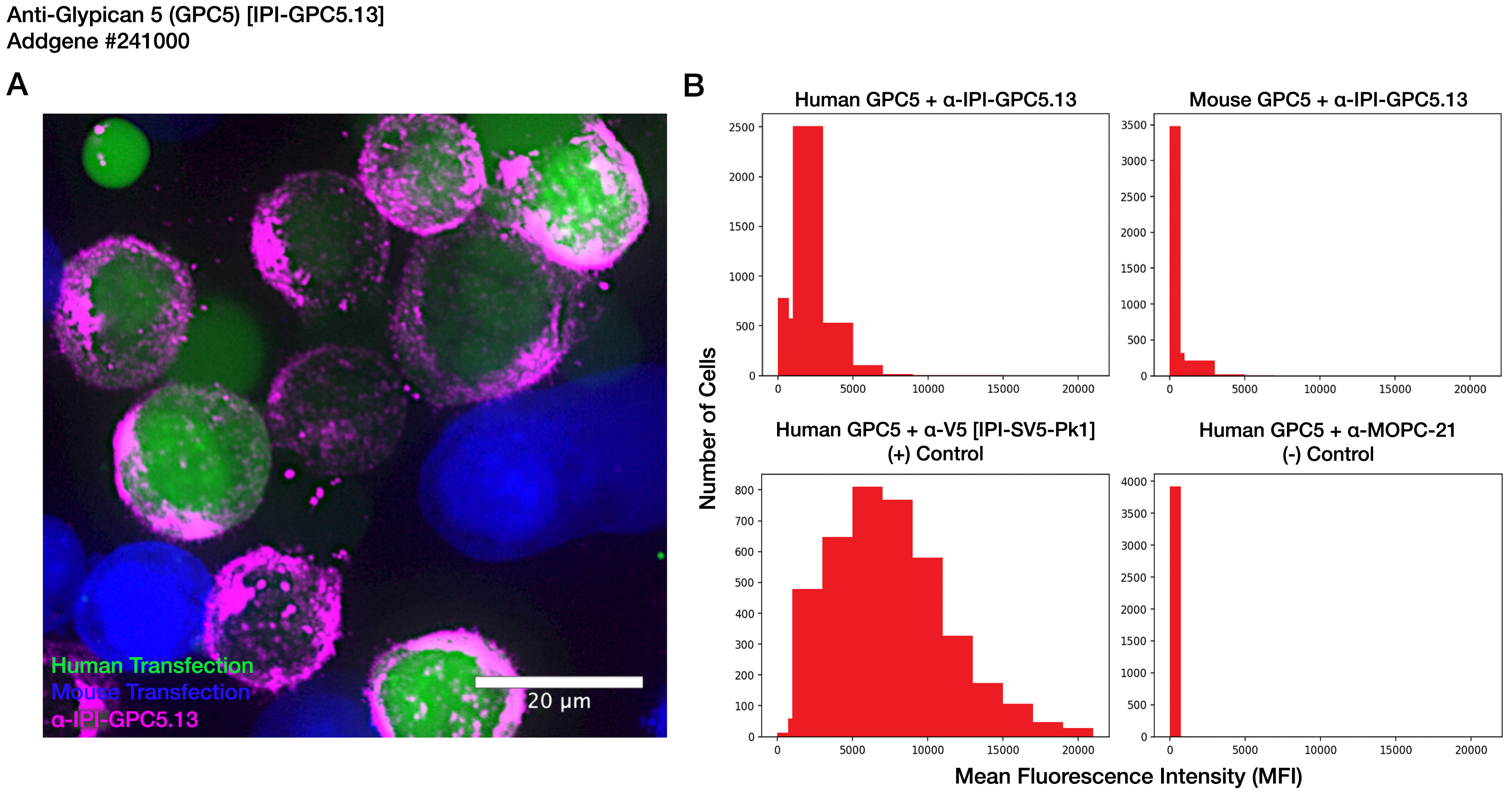 - Experimental results for Anti-Glypican 5 (GPC5) [IPI-GPC5.13] (Addgene #241000) in an immunofluorescence (IF) assay with ExpiCHO cells expressing human or mouse GPC5.