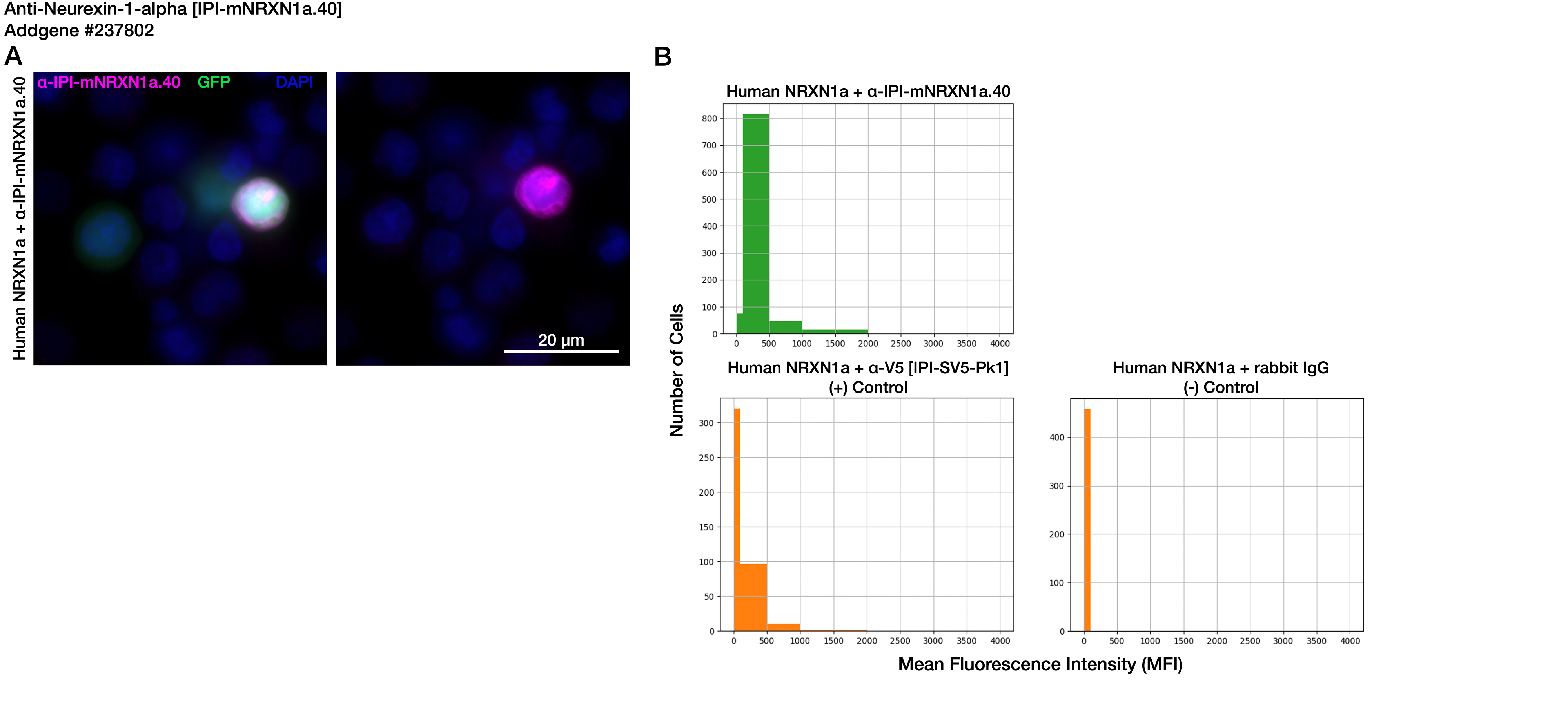 - Experimental results for Anti-Neurexin-1-alpha [IPI-mNRXN1a.40] (Addgene #237802) in an immunofluorescence (IF) binding assay with ExpiCHO cells expressing human NRXN1a.