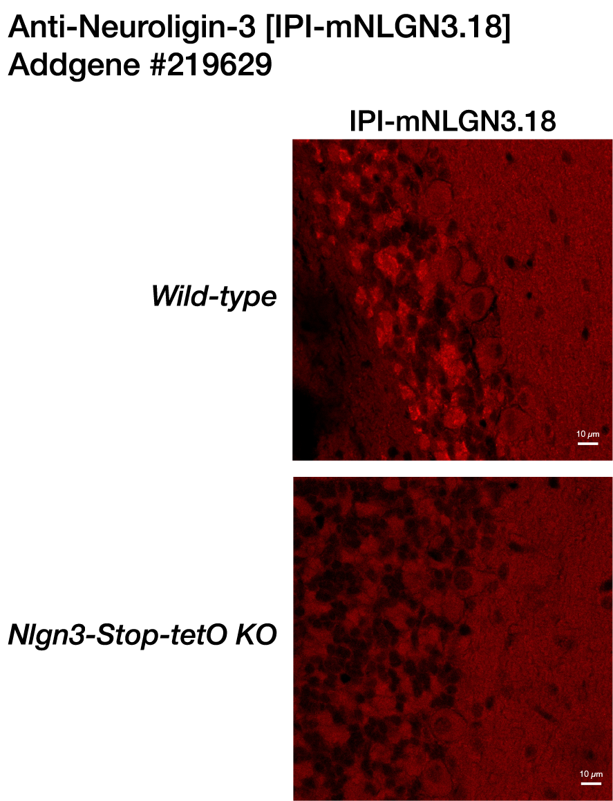 - Experimental results for Anti-Neuroligin-3 [IPI-mNLGN3.18] (Addgene #219629) in an immunohistochemistry assay with a mouse sample.