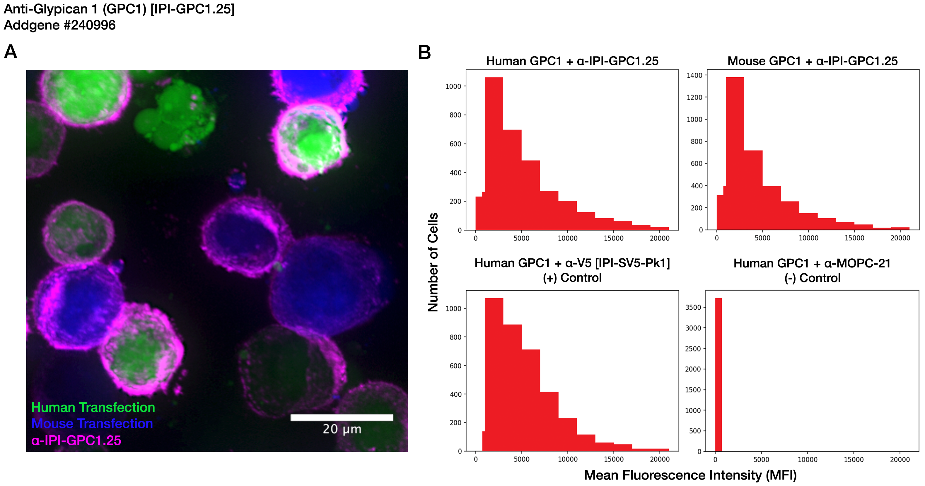 - Experimental results for Anti-Glypican 1 (GPC1) [IPI-GPC1.25] (Addgene #240996) in an immunofluorescence (IF) assay with ExpiCHO cells expressing human or mouse GPC1.